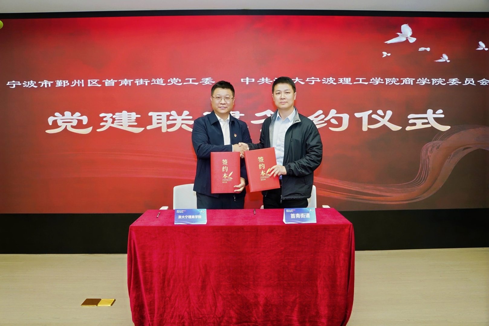 仪式上,首南街道党工委与浙大宁波理工学院商学院党委共同签署了党建共建合作协议。双方将秉持“组织共建、资源共享、项目共研、人才共育、事业共谋、发展共促”的原则,依托共建共享平台,实现互助互补,共同发展的新局面,树立校企合作的新典范。