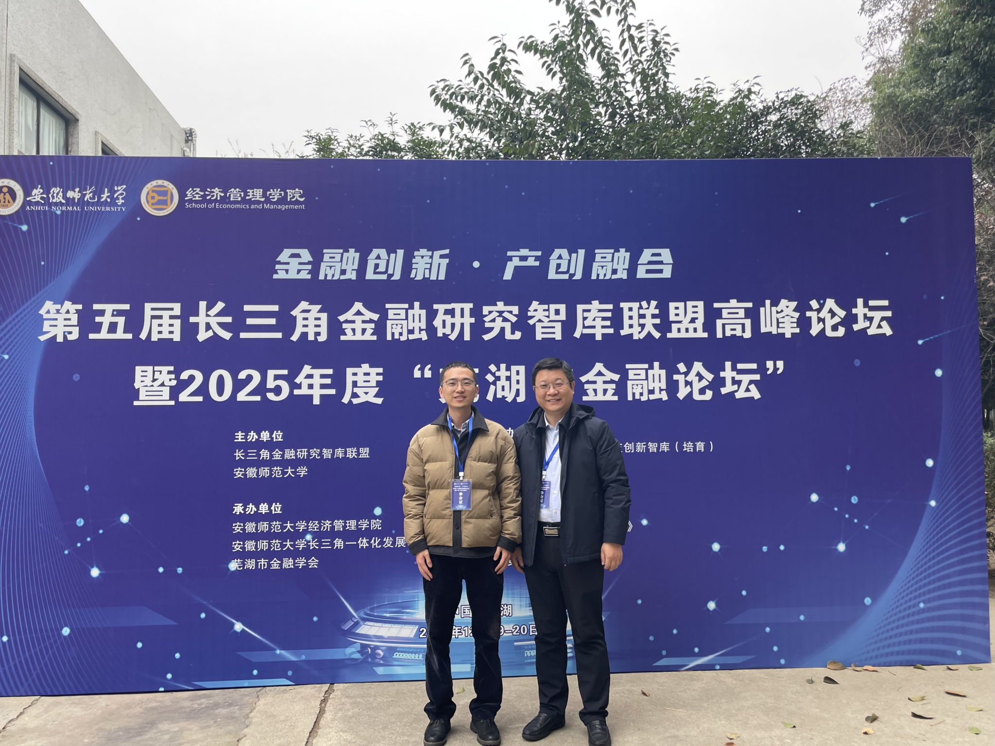 近日,第五届长三角金融研究智库联盟高峰论坛在安徽师范大学举行。作为首批联盟成员单位代表,浙大宁波理工学院商学院党委书记、宁波市金融研究院院长马翔教授、金融系副主任蔡海东博士受邀参会。