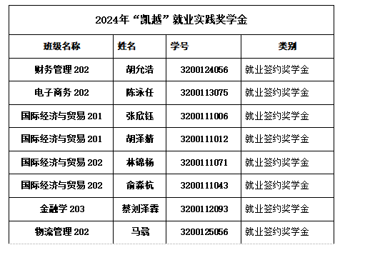 (三)公示:审核后,将“凯越”就业实践奖学金获奖名单、评审情况进行公示;