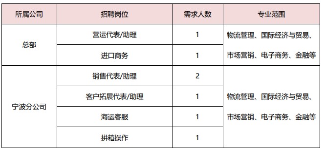 【职位需求】 所属公司 招聘岗位 需求人数 专业范围