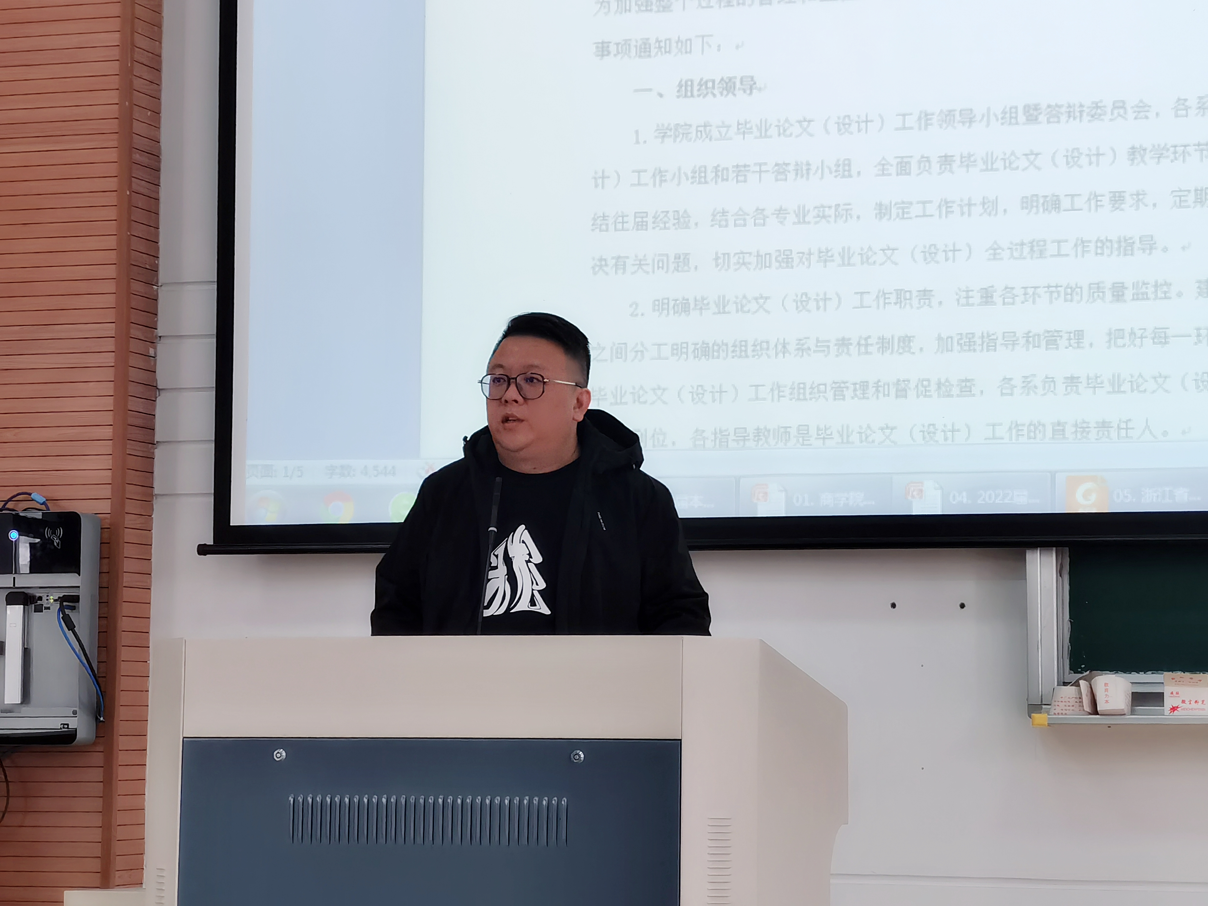 教务主管王一程老师就2022届毕业生论文选题、论文开题报告、论文提交、论文撰写及论文过程管理等内容进行了详细解读,并对毕业生们提出了学术诚信,稳扎稳打完成毕业论文的要求。