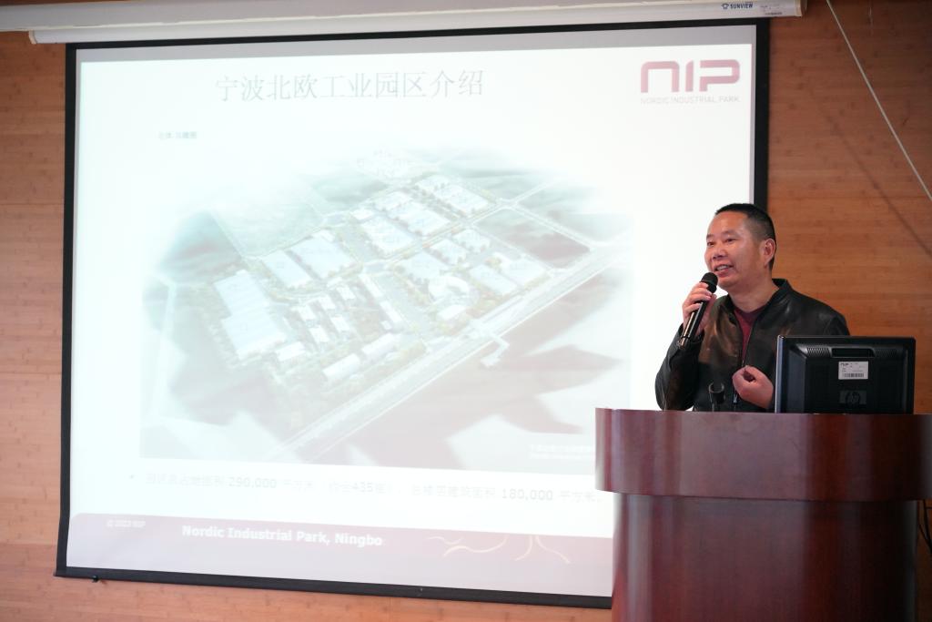 宁波北欧工业园区总经理王海艇对园区建设背景、建设规划、配套设施、产业结构、企业规模、招商引资等方面进行全面介绍。