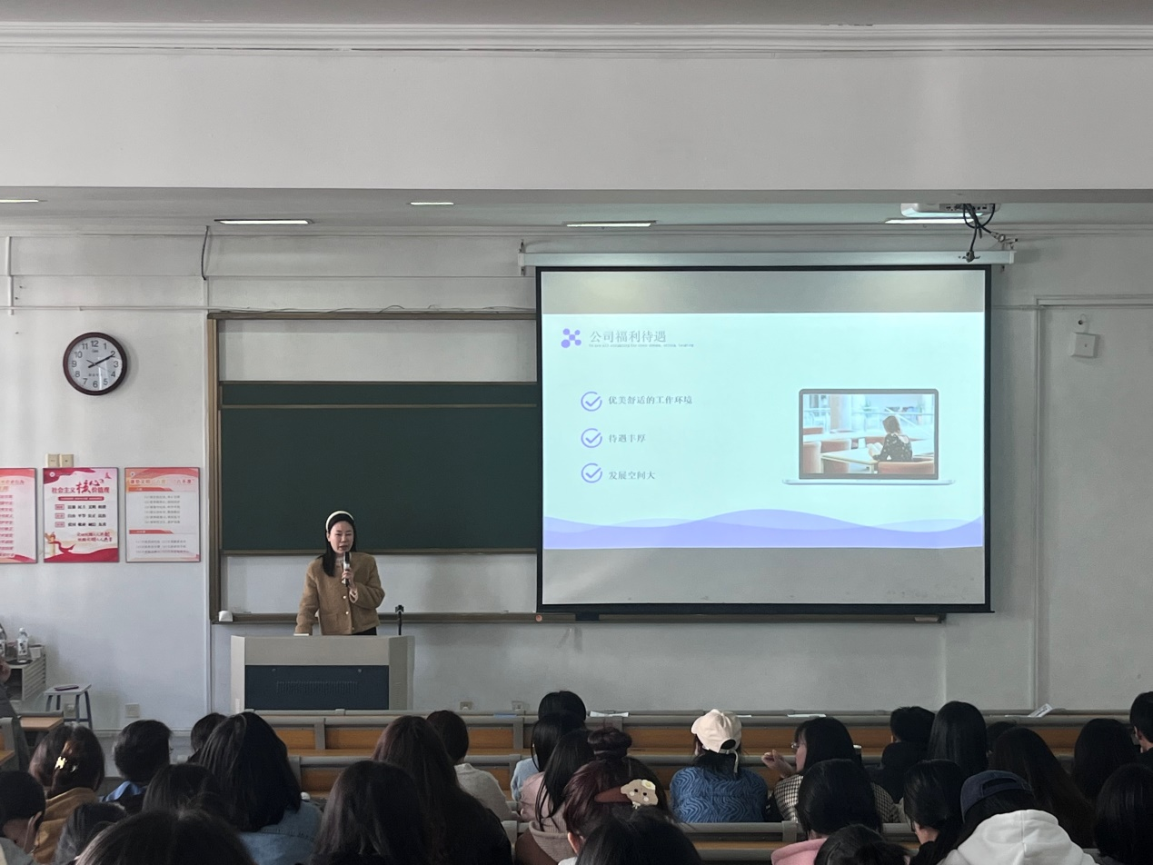 随后,各企业依次进行宣讲,他们分别从企业发展历程、企业文化和人才招聘的要求、薪酬体系等方面进行了介绍,全面展示了企业优势和行业发展前景。