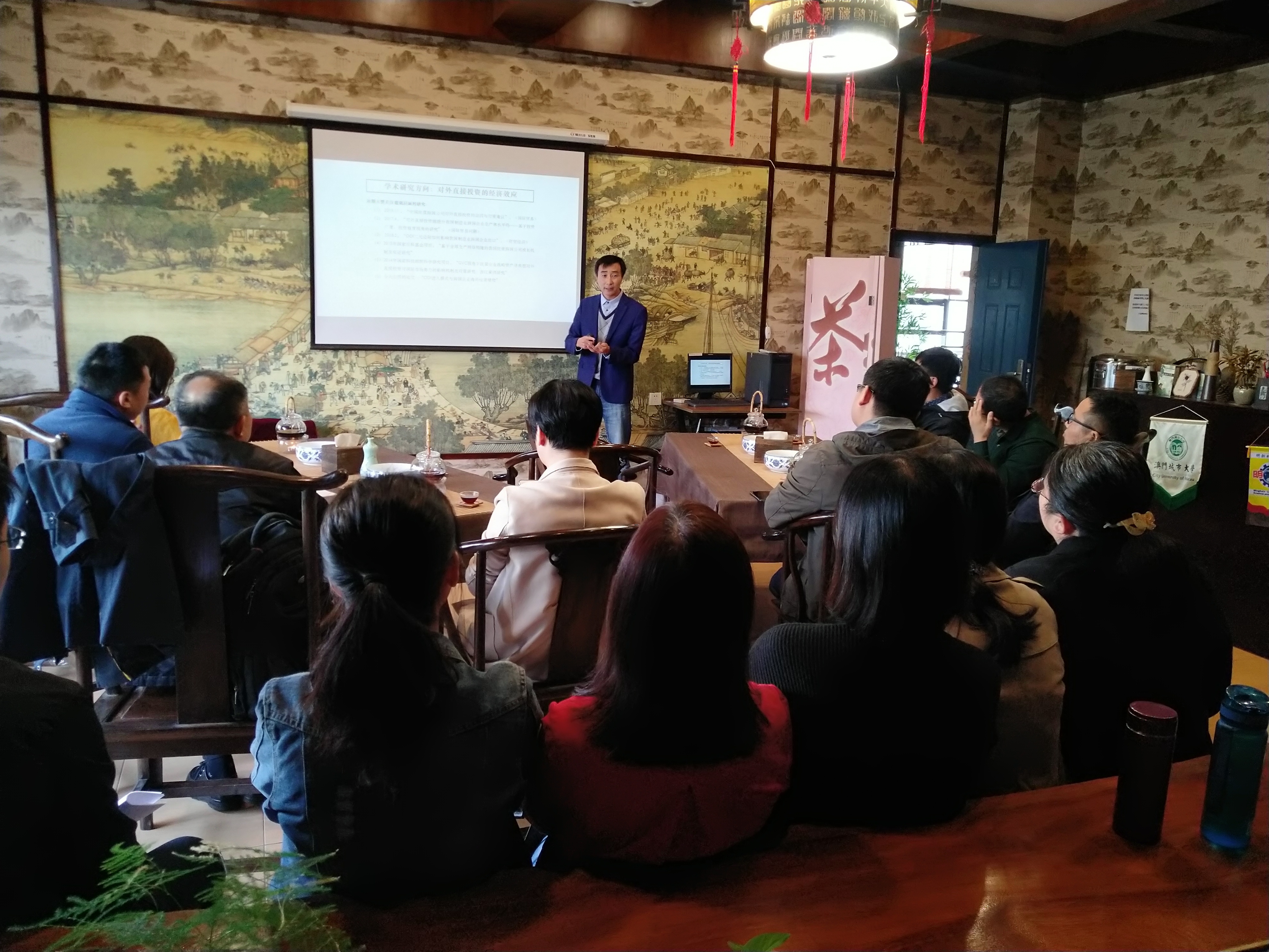 2018年10月23日中午,商学院第二十四期沙龙在大益爱心茶室如期矩形。此次沙龙学院邀请了宁波大学的张海波副教授为我们带来了《ODI进入模式与跨国企业海外经营绩效——兼谈学术研究的几点体会》主题分享。张海波,宁波大学商学院副教授,博士、中国社科院博士后,主要研究对外直接投资的经济效应。近年来,以第一作者或独立作者身份在《财贸经济》发表论文2篇,《国际贸易问题》发表论文3篇,《国际贸易》发表论文1篇,《国际经贸探索》发表论文3篇,出版专著1部。主持完成的课题包括:国家社科基金项目1项、国家科技部软科学研究项目1项、国家博士后基金项目1项、教育部人文社科项目1项、浙江省自然科学基金项目1项、浙江省软科学项目1项。