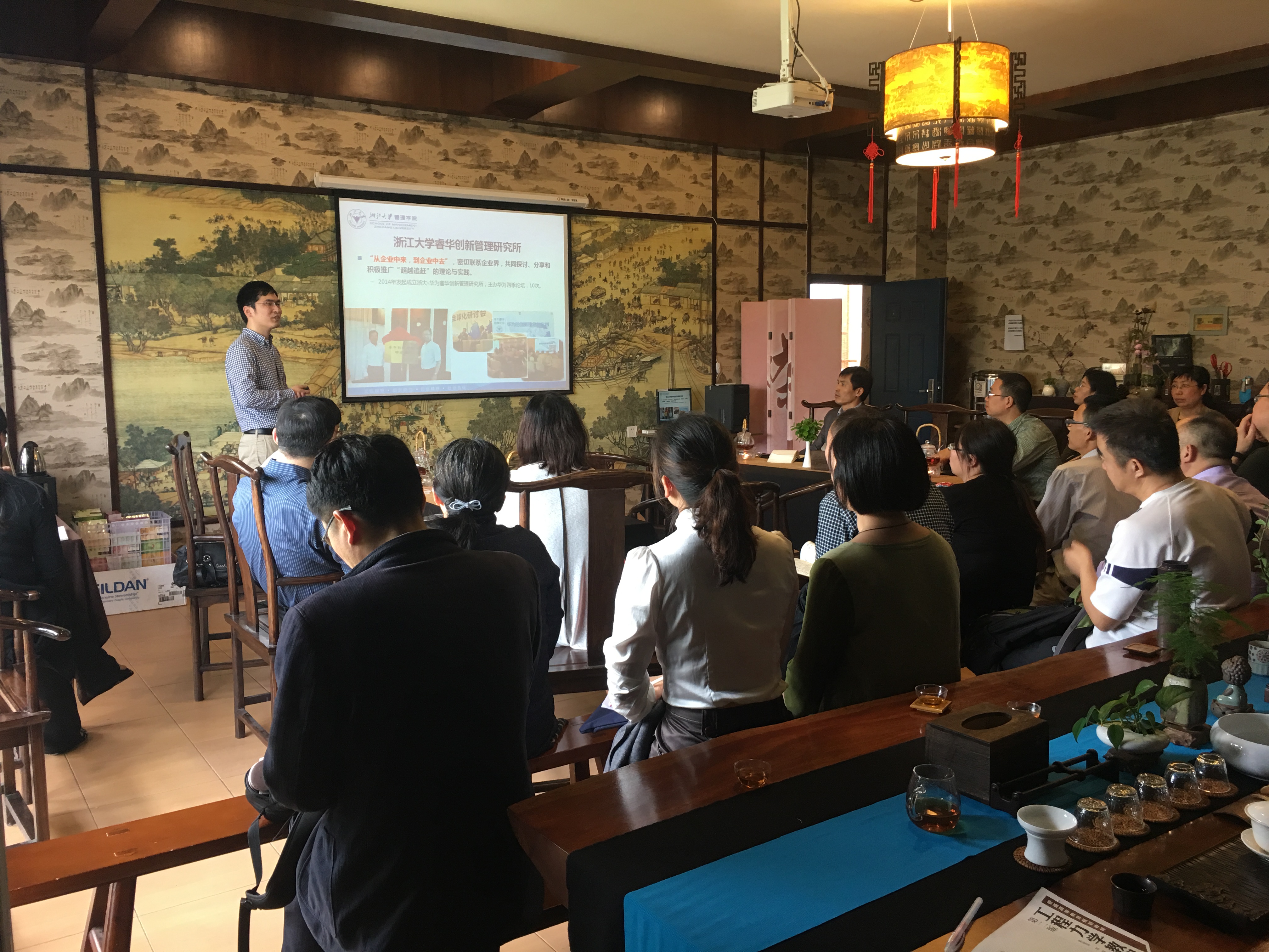4.18日中午,商学院在大益茶室举办了第四场学术沙龙活动,学院邀请浙江大学管理学院吴东副教授带来了《后追赶时代的组织学习:华为的洞察》案例研究分享。吴东教授结合自身所在团队多年对华为的跟踪研究,讨论通过范式转变与追赶的机会窗口,企业如何超越追赶与组织学习。会后,参与沙龙的老师与吴东教授就现今技术不断迭代创新的环境下,企业如何准确把握技术范式更新的时机,以及对企业进行案例研究的方法进行了热烈的探讨!