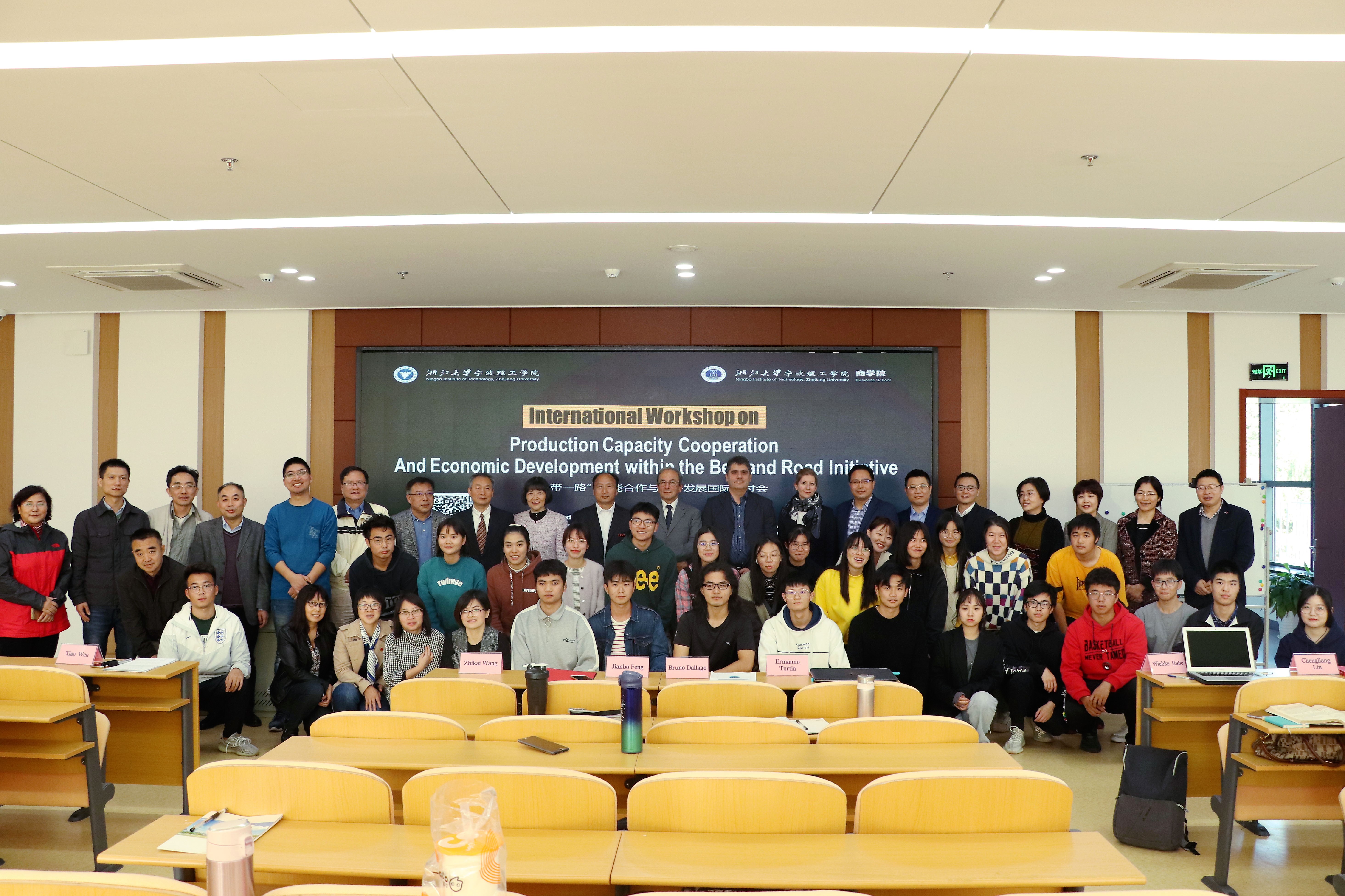 11月14日下午,由浙江大学宁波理工学院社科联和商学院联合主办、宁波市应用经济学重点学科和浙江大学宁波理工学院丝绸之路研究院协办的International Workshop on Production Capacity Cooperation and Economic Development within the Belt and Road Initiative(“一带一路”产能合作与经济发展国际研讨会)在我校学术交流中心召开。学校党委副书记冯建波、商学院常务副院长林承亮、商学院副院长马翔、外国语学院副院长蔡亮以及师生代表约100人参加了此次会议,会议由商学院院长肖文教授主持。