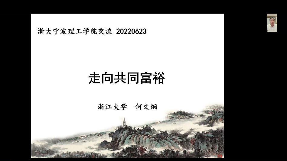 2022年6月23日19点,商学院迎来了智库论坛的第七期活动。本次论坛活动,学院邀请了中国社会保障学会副会长、浙江大学公共管理学院何文炯教授作《走向共同富裕》的报告,学校党委书记胡征宇、商学院院长苗青、商学院师生及其他关心共同富裕的近60位朋友们参加此次论坛活动。由于防控疫情的需要,本次论坛采用线上腾讯会议的方式进行。本次论坛活动由苗青院长主持。