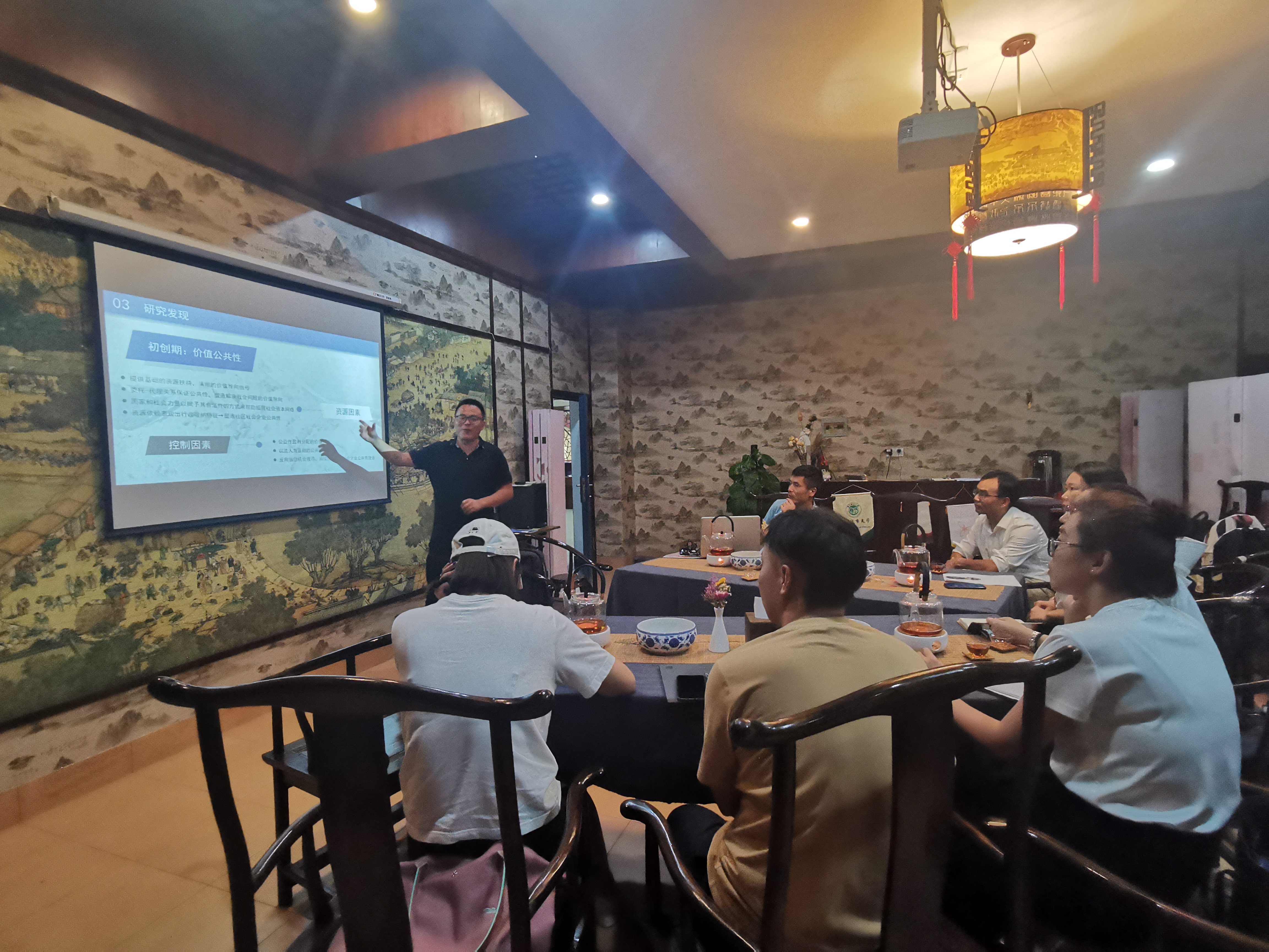 2022年9月28日,商学院“公益慈善学术工作坊”学术沙龙活动在商学院“大益爱心茶室”如期举行。本次主讲嘉宾是浙大宁波理工学院公益学院指导老师袁彦鹏老师,主题为《国家-社会在场如何塑造社区社会企业公共性——基于桂语坊的纵向单案例分析》,商学院10位教师参加了本次沙龙活动。