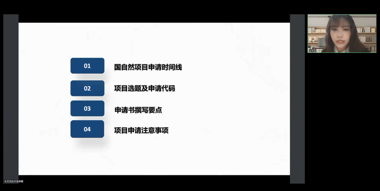 2022年11月30日晚,商学院邀请了浙江大学朱芳菲老师作《国家自然基金青年项目申报体会》的报告,商学院院长苗青教授、商学院副院长鞠芳辉教授、商学院共有35位教师参加了此次辅导会。本次活动由于防控疫情的需要,采用腾讯会议线上方式进行。