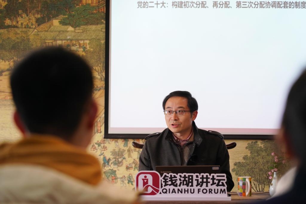 为深入学习宣传贯彻党的二十大精神,进一步提升我校学术交流品质和学术创新氛围。3月30日下午,“钱湖讲坛”党的二十大精神专题第五期在学校大益茶室成功举办。浙江大学公共管理学院教授,博导,教育部青年长江学者,浙江大学社会治理研究院首席专家,浙江大学民生保障与公共治理研究中心研究员,Journal of Public Affairs 副主编,浙大宁波理工学院商学院院长苗青教授应邀主讲。讲座以线下线上结合的形式举行,校内和社会五百余名师生听众齐聚云端,参与本次活动。
