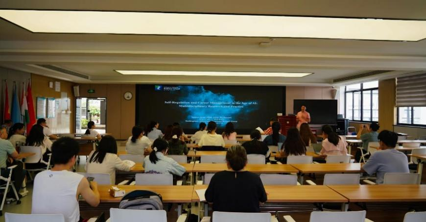 2025年5月22日下午,浙大宁波理工学院商学院智库论坛的第十九讲在SC412教室顺利举行。本次讲座特邀教育部长江学者、宁波诺丁汉大学商学院讲席教授管延军老师,以《人工智能时代的自我调节与职业管理:多学科研究与实践》为题作学术报告,吸引学院各系教师及学生代表40余人参与,现场互动热烈,学术氛围浓厚。