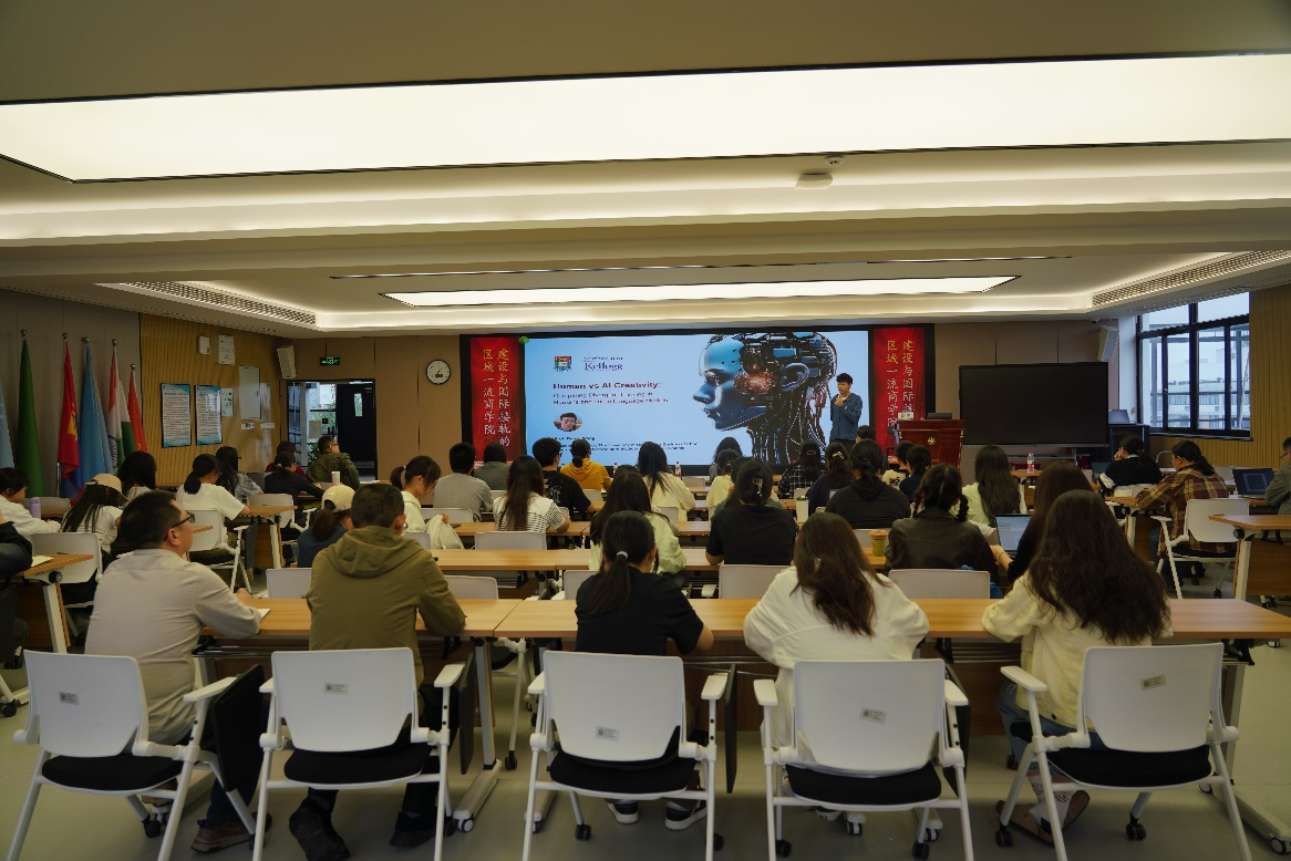 2025年5月8日下午,浙大宁波理工学院商学院智库论坛的第十八讲在SC412教室顺利举行。本次讲座特邀香港大学经管学院王大维教授,以“人类vs大语言模型的创造力:人类和大语言模型的发散思维能力的大规模比较”为题作学术报告,吸引各系师生代表50余人参与,现场学术氛围浓厚。